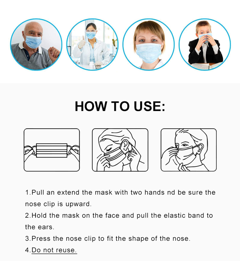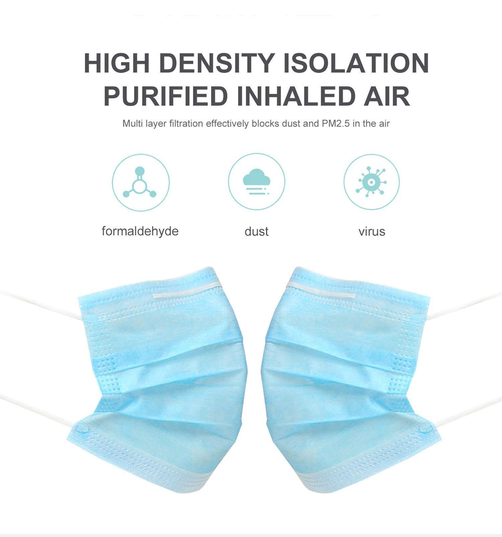 3Ply Disposable PP Face Mask Earloop Mask Anti-viral Anti Dust Protective Mask